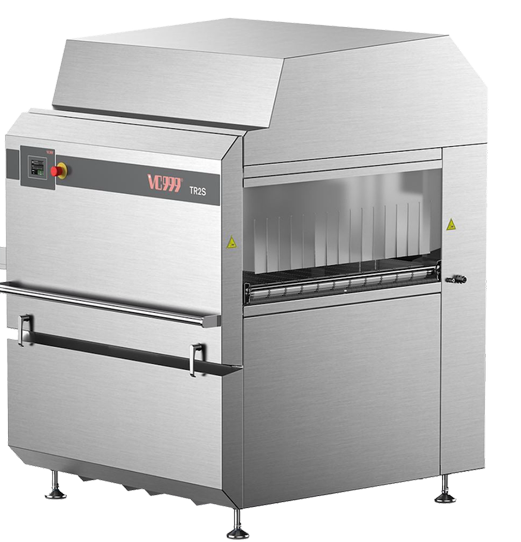 The VC999 TR2 dryer is a fully automatic in-line dryer tunnel. The VC999 TR2 will make products arriving wet e.g. from a shrink tank, sufficiently dry for following labelling or cardboard packaging operations. The wet packaging is dried by use of automatically adjustable air blades. The continuous throughput enables cost-effective drying of large production volumes. The VC999 TR2 does not require compressed air, thus enabling energy-saving operation. Combined with the shrink tunnel VC999 ST2 and a VC999 vacuum packaging chamber belt machine, a powerful vacuum shrink-line can be created.